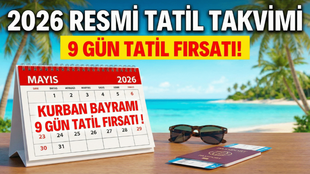 2025’i bitirmeden gözler 2026 takvimine çevrildi. Yeni yılın resmi tatil günleri belli olurken, özellikle Mayıs ayındaki tablo çalışanları heyecanlandırdı. Kurban Bayramı ve 19 Mayıs ile birleşen izinlerle uzun soluklu tatil fırsatları doğuyor. İşte gün gün 2026 resmi tatil takvimi…